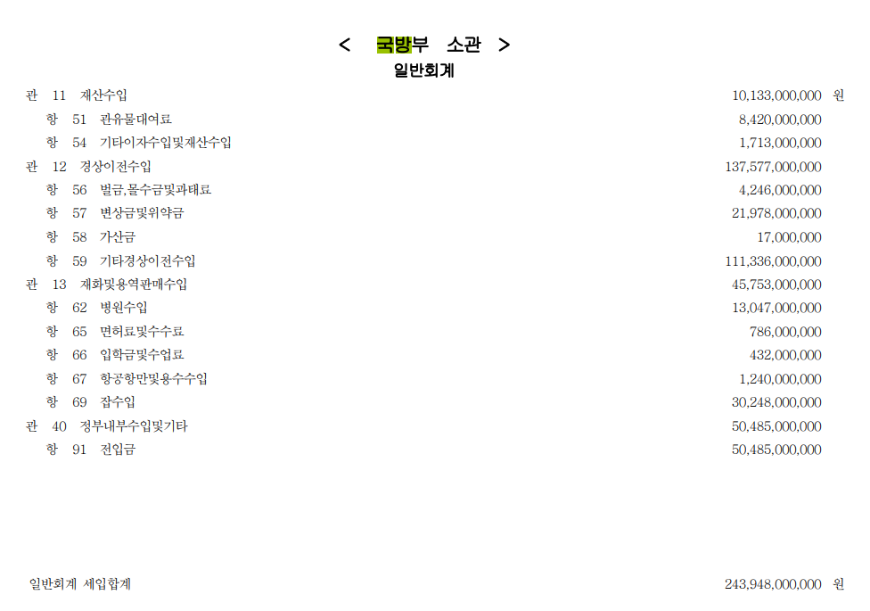 상단의 링크에서 얻은 자료를 토대로 2021년 국방비의 세입,세출 내역과 2021년 방위력개선비, 병무청 예산 등