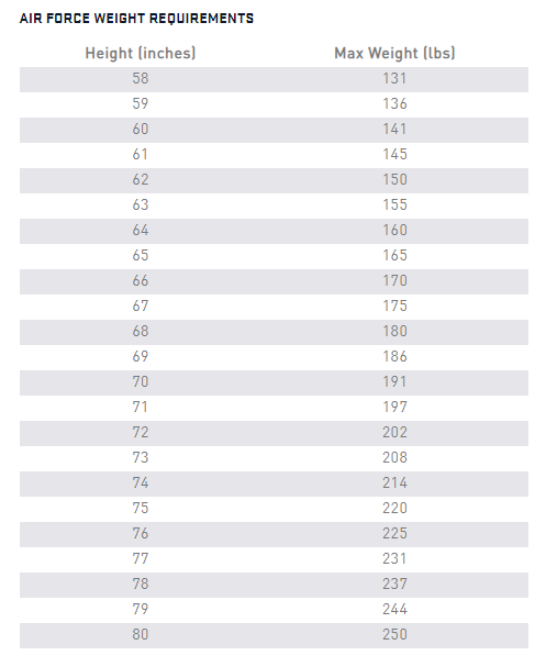 (사진 출처=미 공군 모병 웹사이트 collaboratory.airforce.com/height-weight)