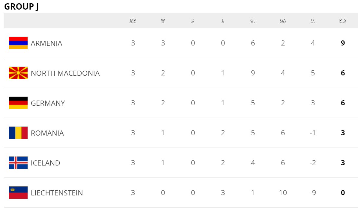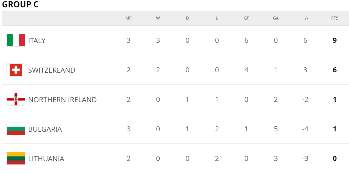 *카타르는 개최국이기에 월드컵 자동 진출권을 갖고있지만 UEFA의 초청 참가국 자격으로 유럽예선 A조 경기에 참여하며