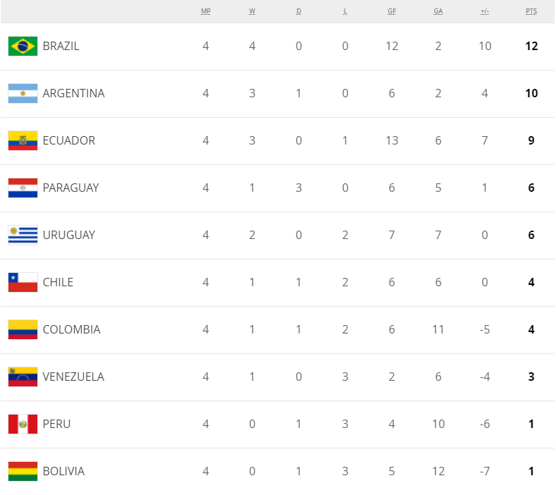 *이 포스팅의 남미 예선 순위표는 포스팅 작성 시점의 순위표이지만, 이 글 본문 2. 순위표 단락에 보시면