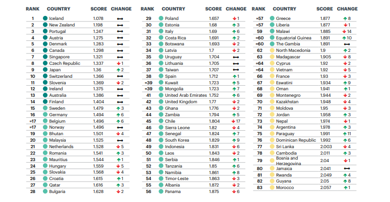 오늘의 포스팅은 이 지수에 의해 순위가 매겨진 세계에서 평화로운 나라 순위를 소개하고, 23가지 측정지표가 무엇인지