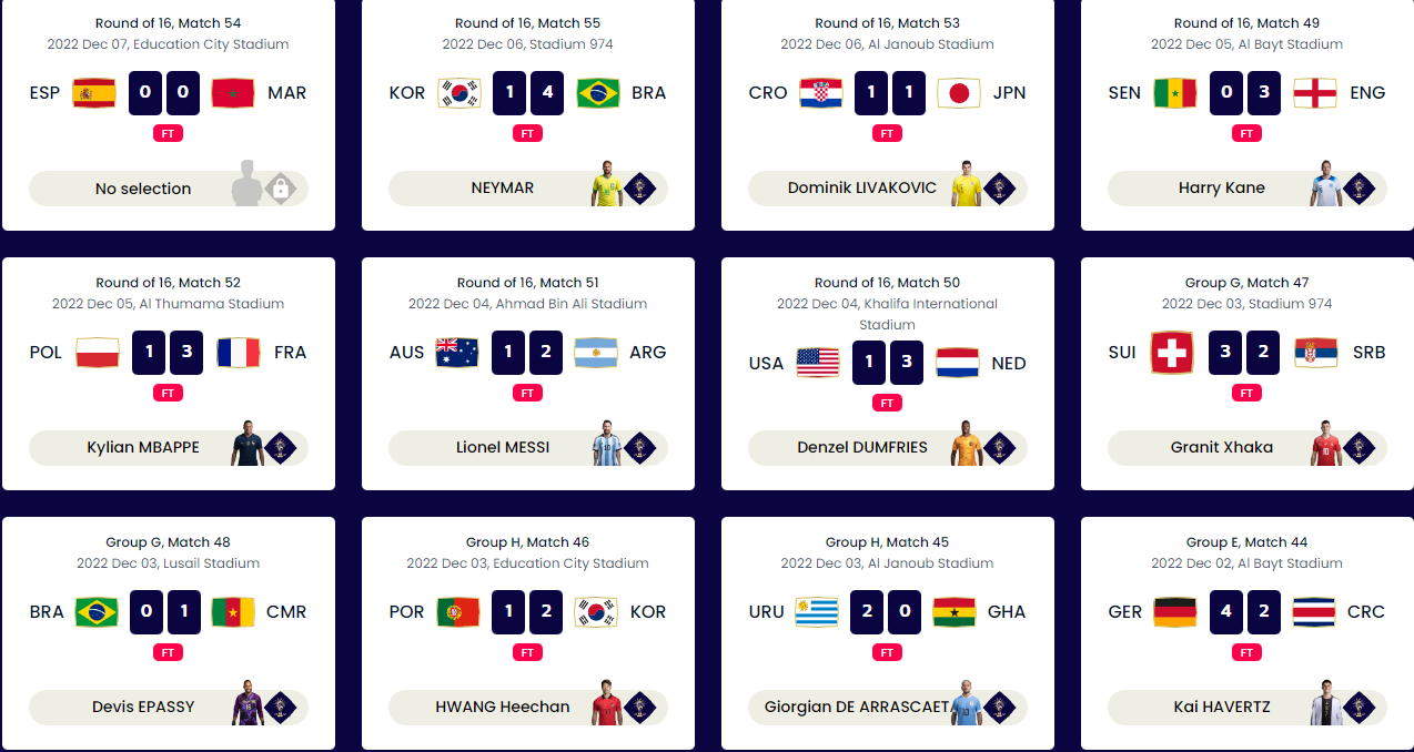 위에 플레이 피파, 버드와이저potm 웹사이트로 방문하시면 이번 카타르 월드컵 경기별 최우수 선수, potm을 확인할 수 있습니다.